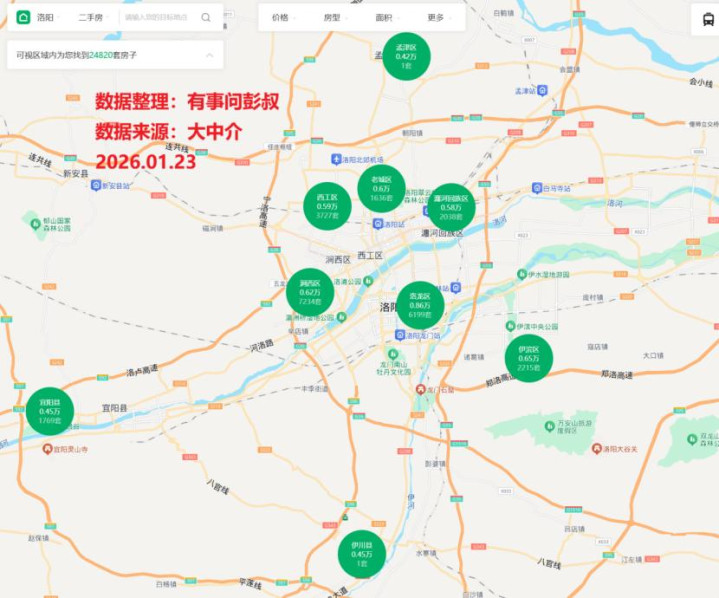 洛阳楼市从2021年巅峰到现在2026年1月,其实洛阳房价的跌幅也还好,没有那些东部沿海城市跌的那么多。