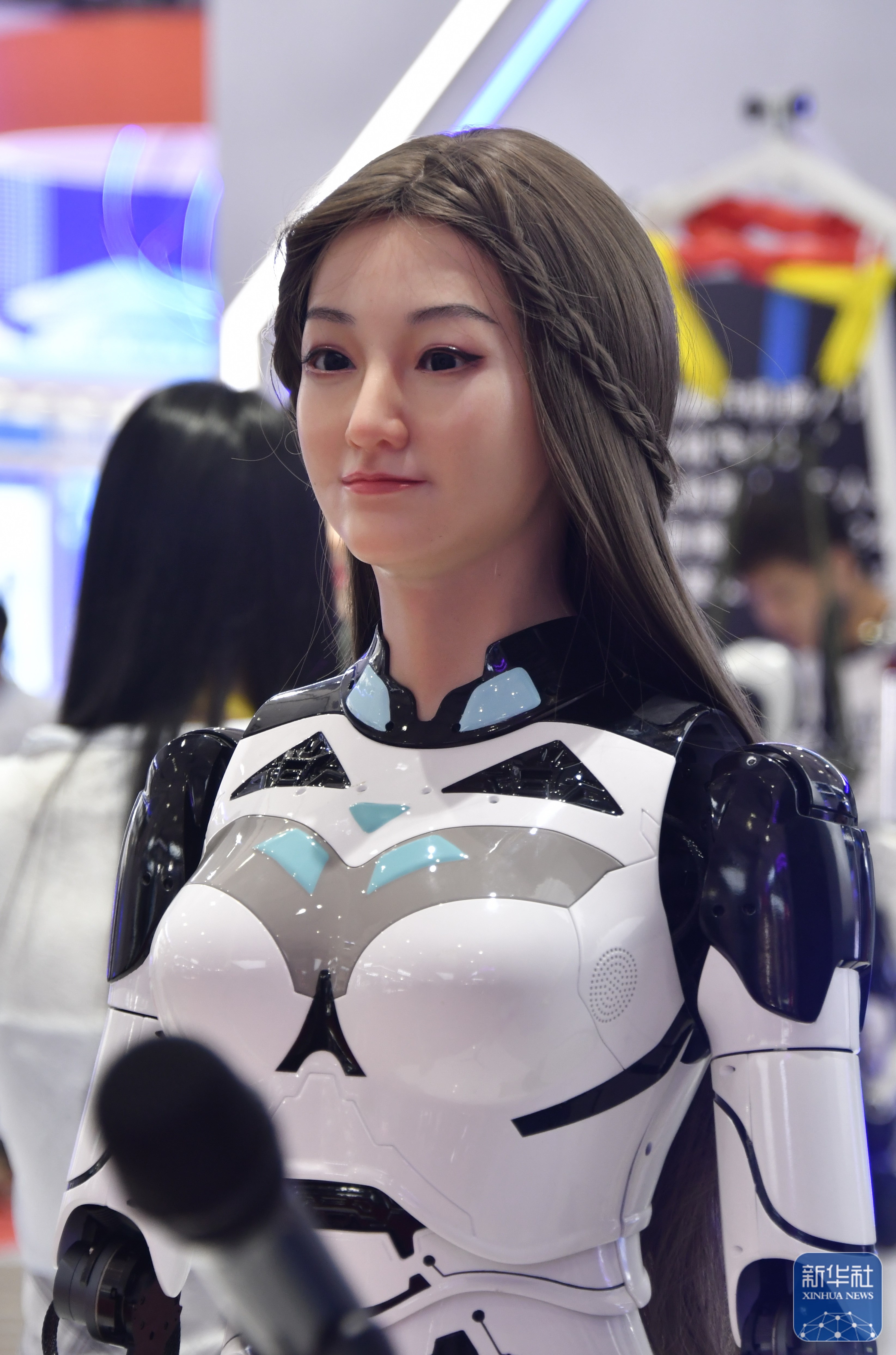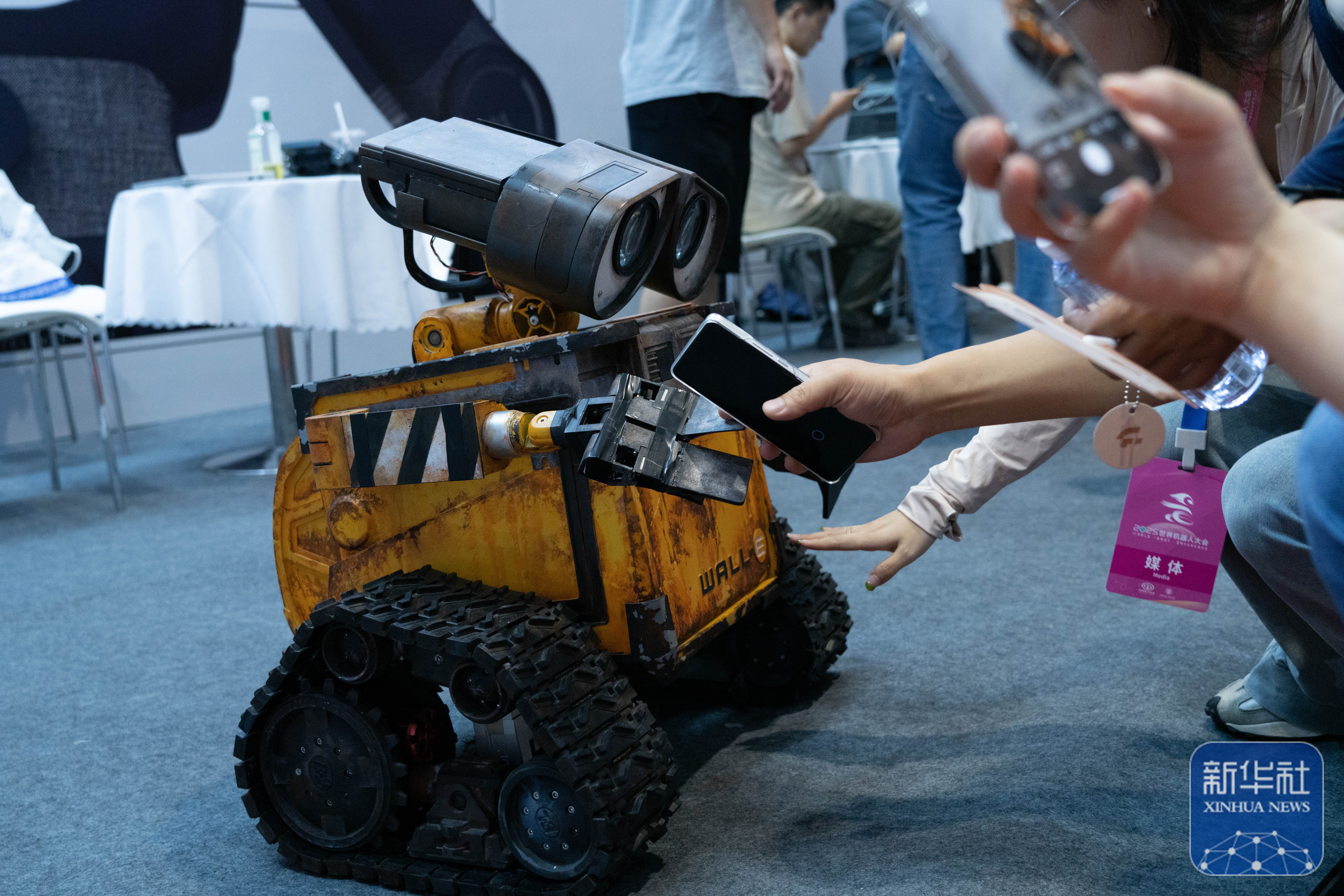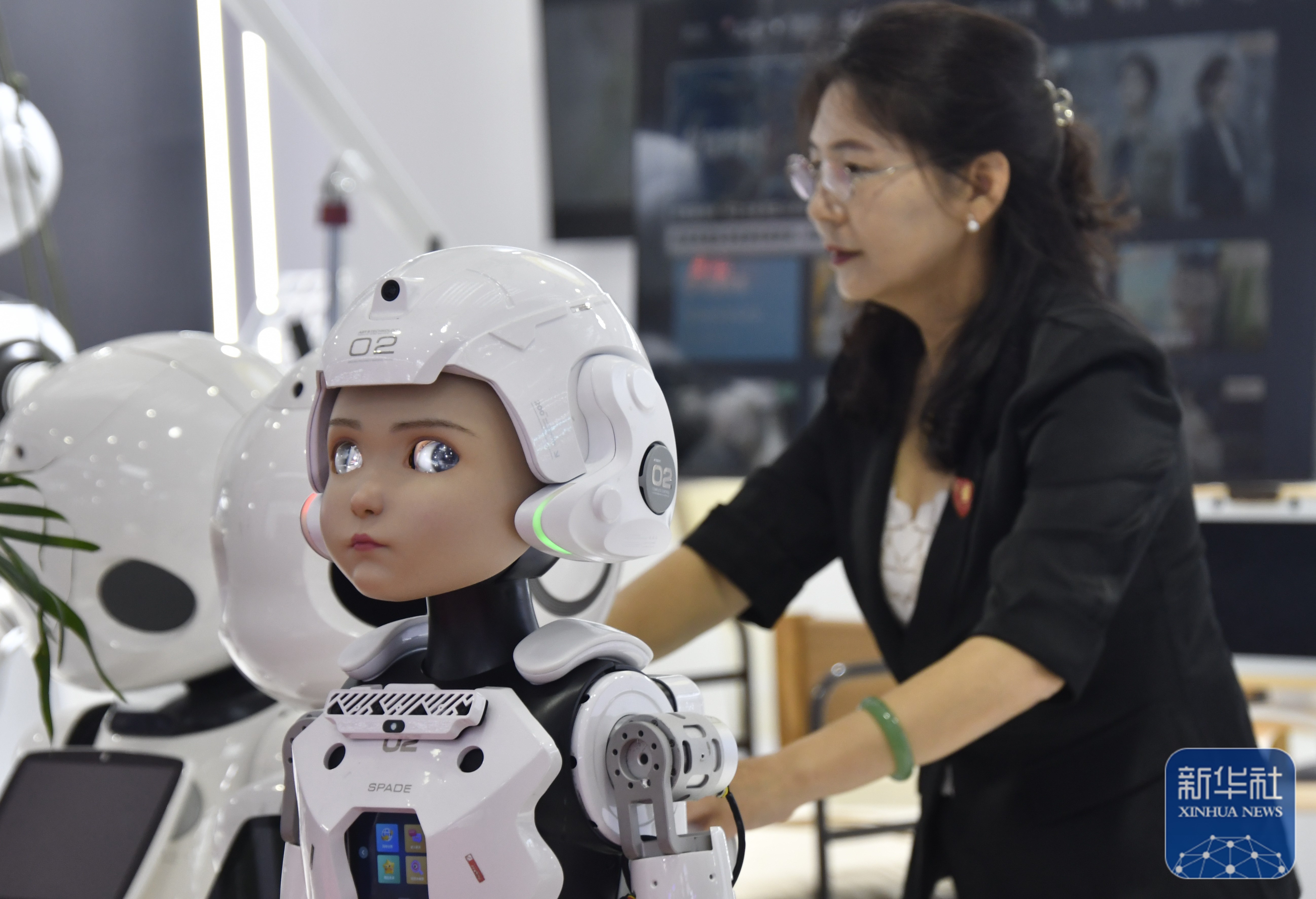 ↑ 2025世界机器人大会上展示的一款人机互动的智能机器人(8月8日摄) 。