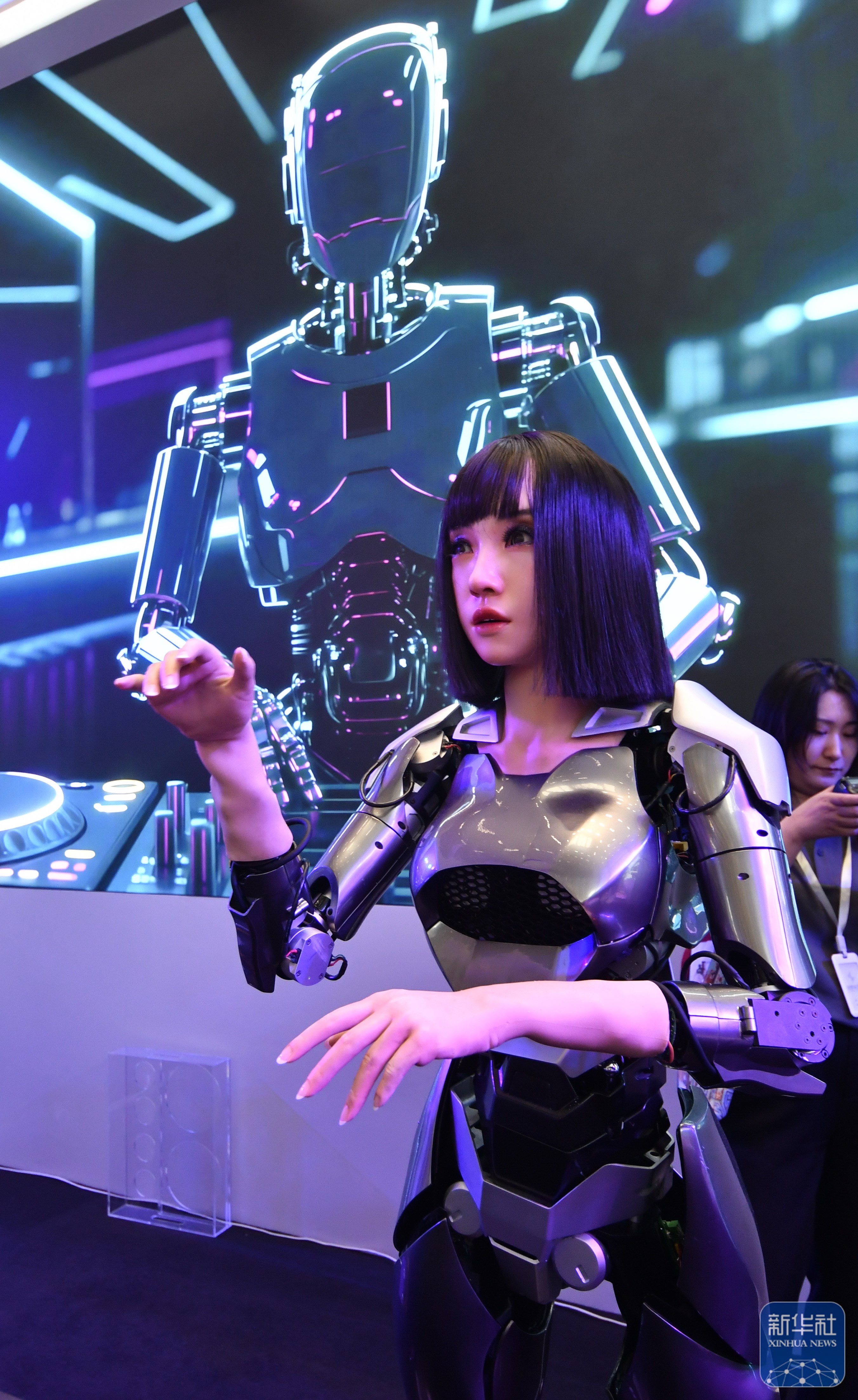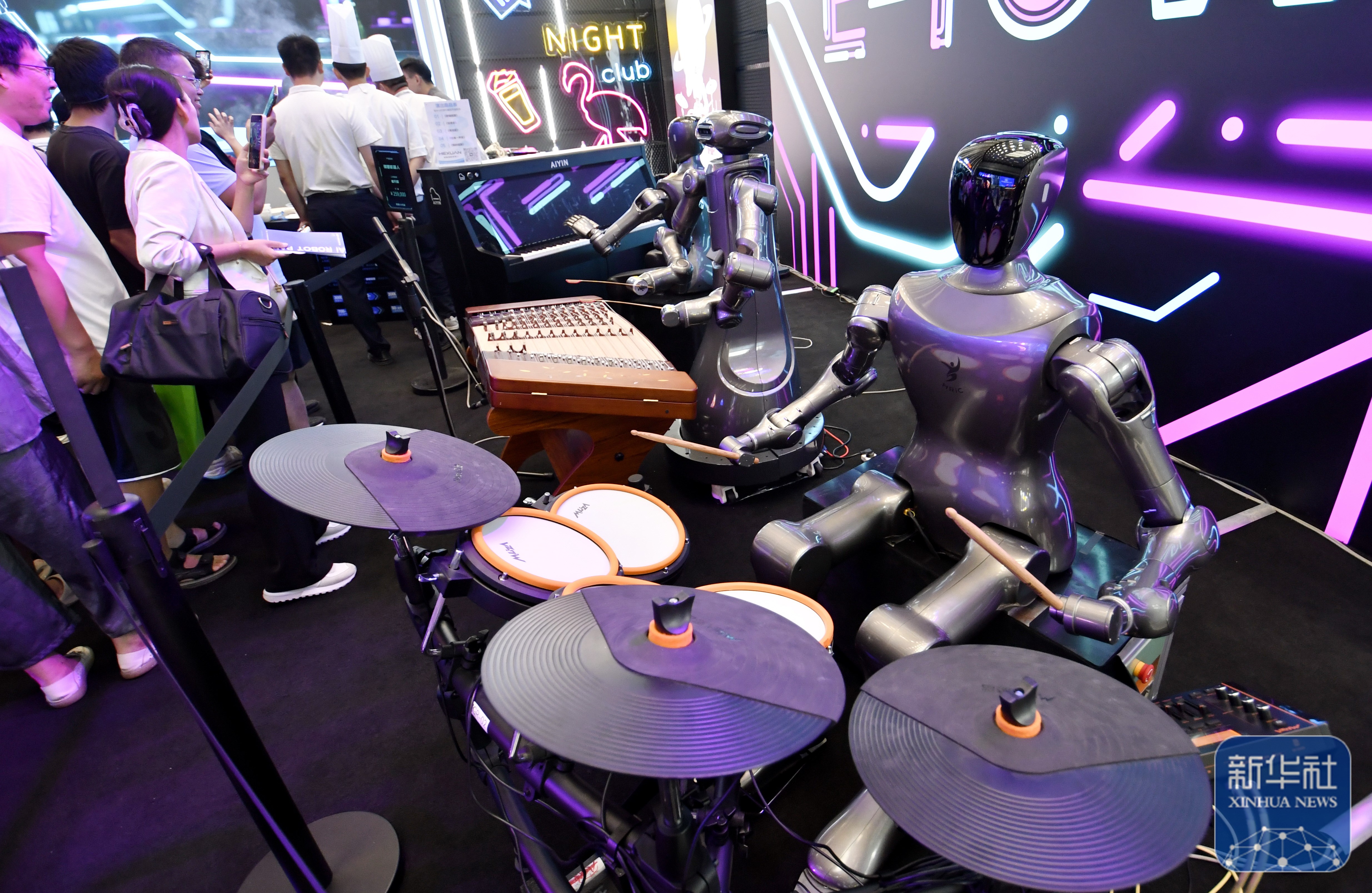 ↑ 2025世界机器人大会上展示的智能机器人乐队(8月8日摄)。