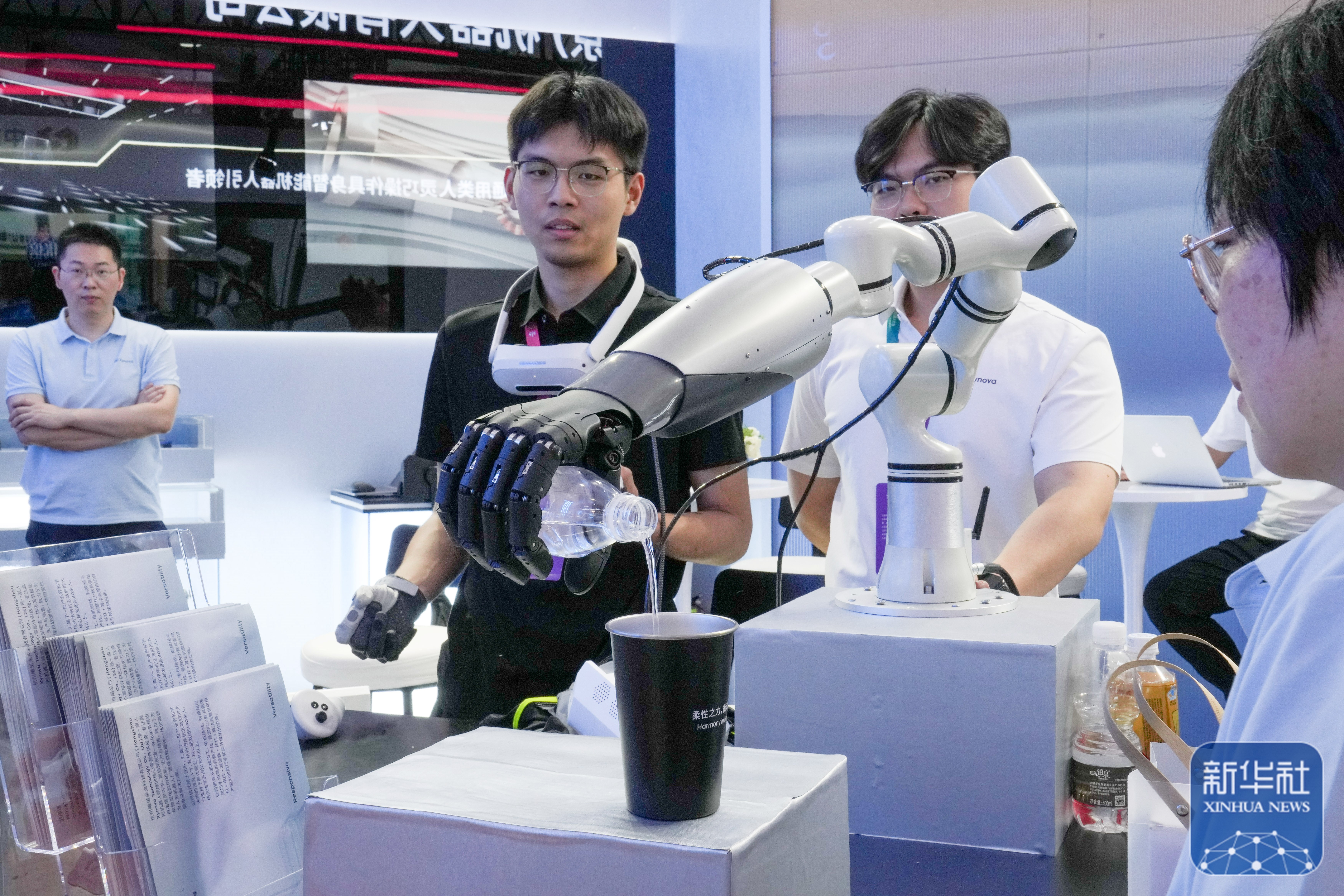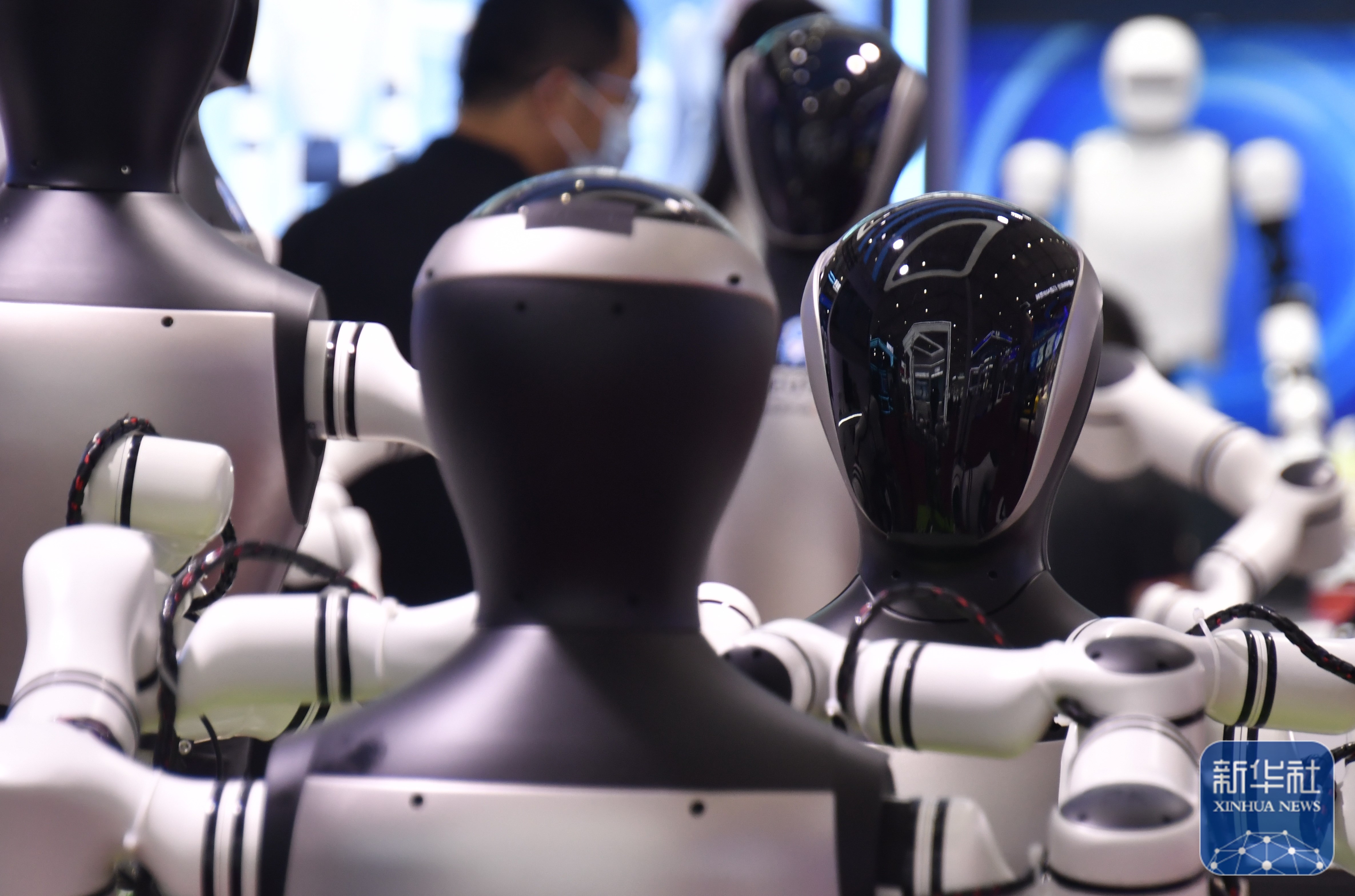 ↑ 2025世界机器人大会展馆内展出的机器人(8月8日摄)。
